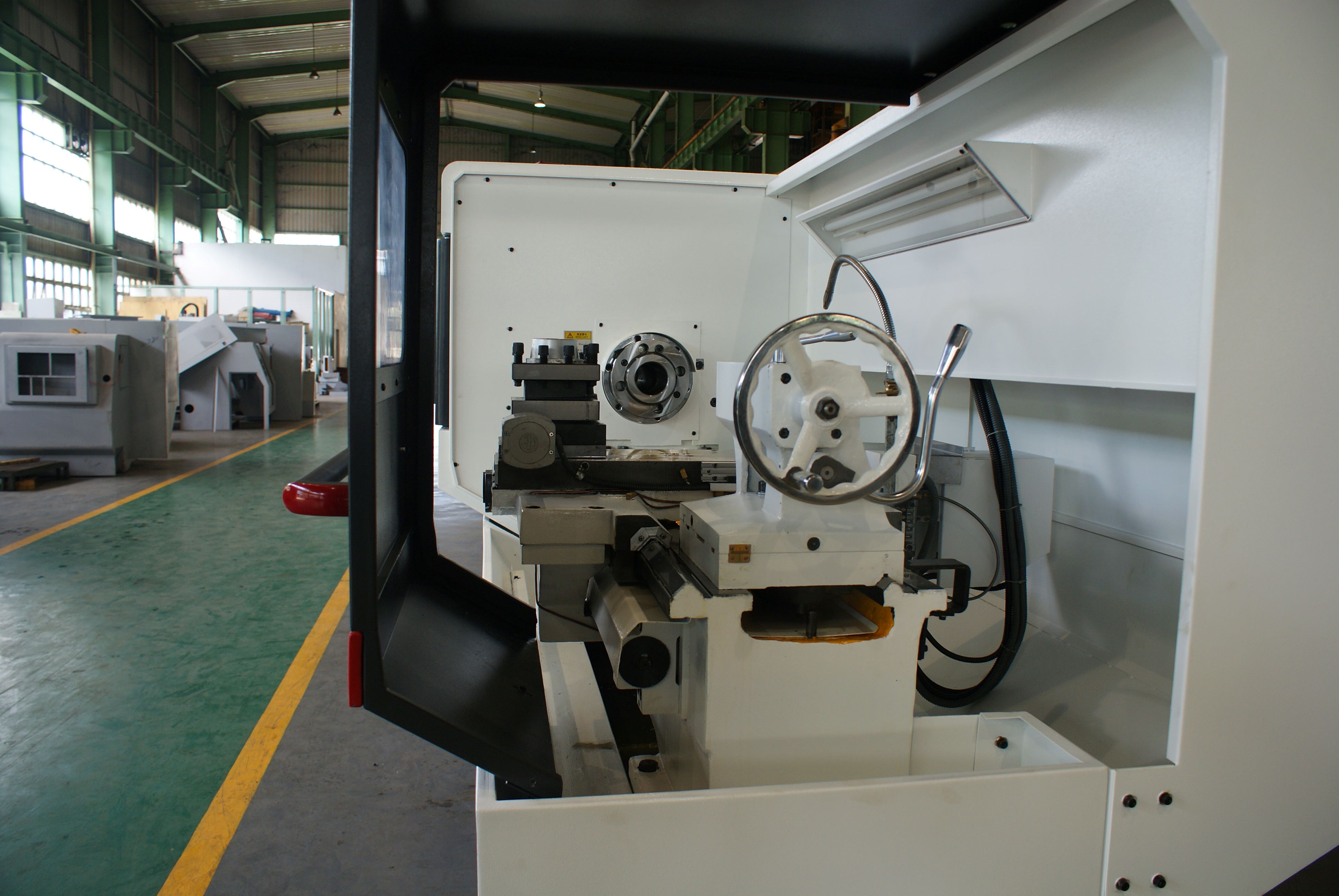 1)机床导轨和滑鞍导轨都采用特殊性材料的硬导轨,经超音频淬火,超硬耐磨,经久耐用、加工精度保持性好。